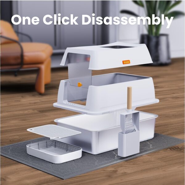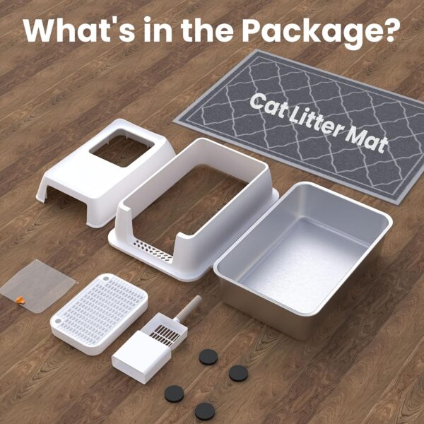 Tired of frequent litter box changes? Upgrade to our extra-large stainless steel cat litter box, designed to last up to 5 years without deformation. Unlike plastic options, our metal litter box simplifies cleaning—it doesn’t hold odors or cling to waste (best results with 20lb of cat litter).